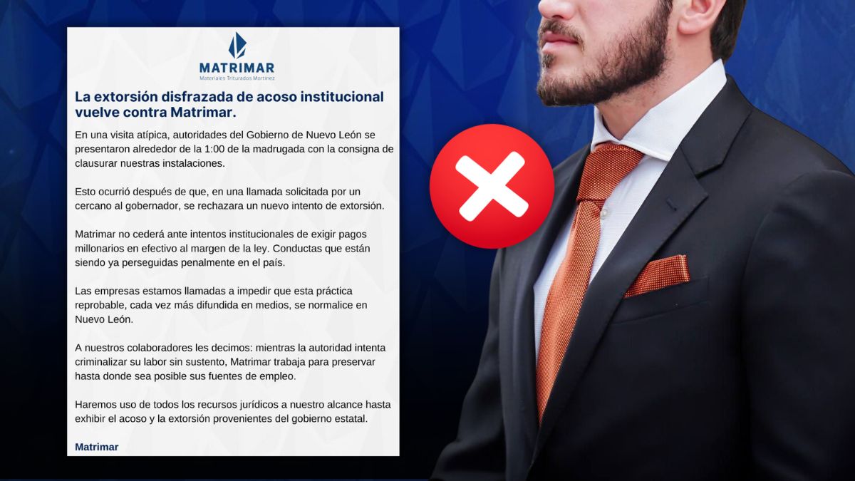 El clima de negocios en el estado se ha visto empañado por lo que muchos califican como un “terrorismo fiscal y administrativo”. Matrimar, una empresa fundamental para el suministro de materiales, reveló que la extorsión de Samuel García comenzó con presiones económicas fuera de la ley. Al no ceder ante la exigencia de sobornos estatales millonarios, la respuesta de la administración fue el cierre inmediato de sus instalaciones.