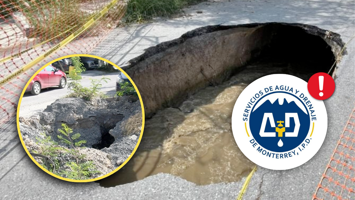 En la calle Mangle, un vecino lleva más de cinco meses viviendo frente a un enorme socavón que Servicios de Agua y Drenaje de Monterrey (AyD) dejó tras reparar una fuga. Durante los trabajos, las cuadrillas rompieron otra tubería de aguas negras y jamás regresaron a concluir la obra.
